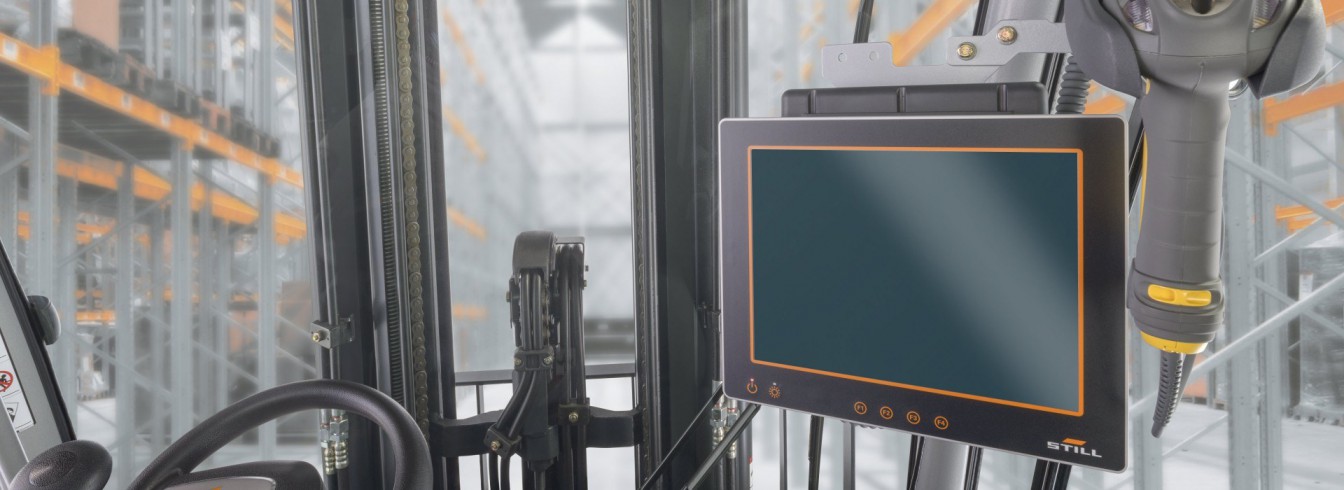 In the context of the STILL material flow management system, the term hardware refers to all the components forming a system together with the software. Hardware refers to everything having to do with computers and network – work stations, servers, wireless communication equipment and terminals such as truck-mounted terminals handhelds, mobile and stationary label printers and scanners. Other components like transponders (RFID) and mobile work places for goods received and for order picking are also referred to as hardware. Beside a broad range of hardware components from renowned manufacturers, STILL also offers its own hardware components, for example, the STILL Touch Terminal and the STILL Pick-by-Voice components.
