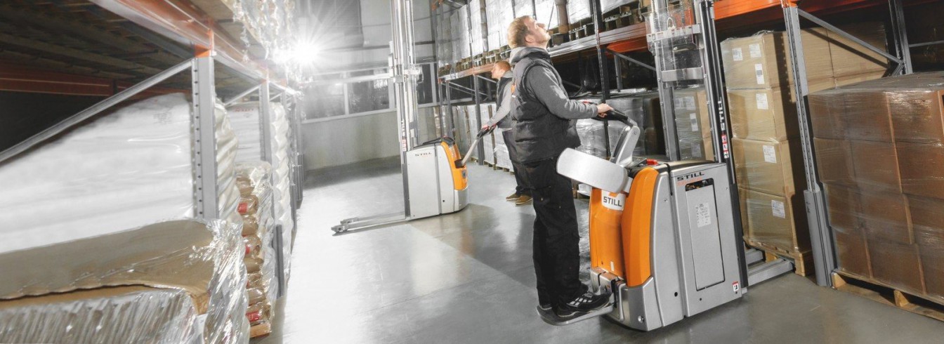 With the STILL high lift stackers you will always have both hands on the organisation of your warehouse. Even in the smallest aisles, you will easily move up to two tons with these compact trucks. And more: Thanks to high residual capacities, you will be able to densify your warehouse to make best use of the available space. Benefit from storage heights of over five metres. High Lift Stackers with air-suspended platforms and top driving speeds of up to 10 km/h guarantee swift and healthy pallet transport also over long driving distances.